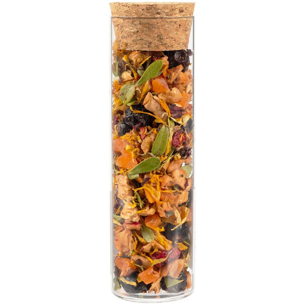 - фруктовый напиток «Фруктовый мир» (состав: каркаде резанный, сушеное яблоко, ежевика сублимированная, облепиха сублимированная, смородина сублимированная, малина сублимированная, календула, плоды черноплодной рябины, кожура шиповника, лист брусники, цукаты «папайя», ароматизатор «малина», ароматизатор «вишня»), вес 40 г.