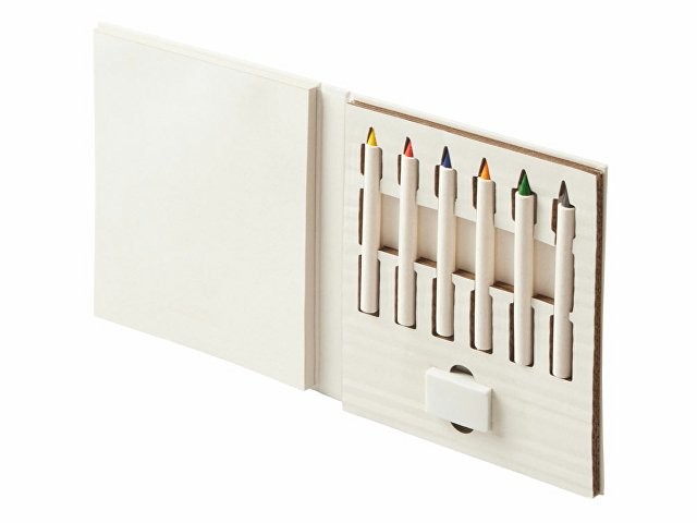 Расчет нанесенияНабор для рисования из переработанных тетра-паков. Внутри 6 цветных карандашей, ластик и пустые листы для рисования.