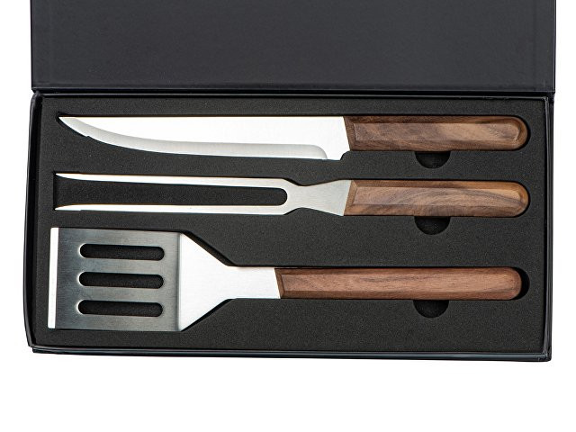 Набор для барбекю от Tour de Grass состоит из лопатки, вилки и ножа с ореховыми ручками. Все три приспособления для готовки — изящные, функциональные, прекрасно подойдут для подарка, а футляр на магните, идущий в комплекте, решит вопрос упаковки. - длинные деревянные ручки, которые удобно держать в руке — так вы точно не обожжетесь во время готовки - нержавеющая сталь - подарочная упаковка на магните