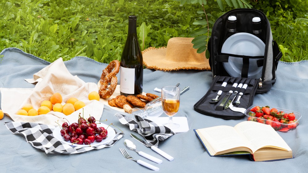 Набор для пикника "Австрия" рассчитан на 2 персоны. Все предметы в наборе фиксируются внутренними резинками.