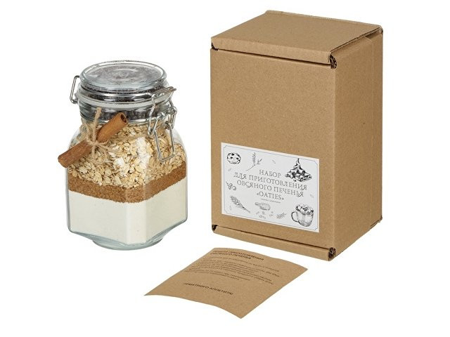 Рецепт приготовления овсяного печенья: · Смешайте все ингредиенты из банки в большой миске. · Добавьте 125 г мягкого сливочного масла, два яйца и замесите тесто до однородной массы. · Скатайте из теста небольшие шарики. · Положите их на смазанный растительным маслом лист для выпекания и немного придавите сверху дном стакана. · Выпекайте 10-15 минут при температуре 180 С⁰ до светло-коричневого цвета.