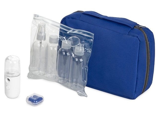 Практичный, легкий и компактный набор для путешествий. Аккуратный несессер можно взять в салон самолёта как ручную кладь, поэтому всё необходимое будет всегда под рукой, например, беруши, которые входят в состав сета. Флакончики объёмом 80 мл подойдут для шампуня, геля для душа и других косметических средств, один флакон оснащён распылителем. Бутылочки упакованы в прозрачный непромокаемый пакет на zip-lock застёжке, который дополнительно защищает багаж. Портативный увлажнитель для лица быстро освежит кожу и поможет сохранять ее увлажненной даже в долгих перелетах. - несессер подходит для ручной клади; - увлажнитель заряжается через usb провод (в комплекте); - всё, что нужно для путешествия на поезде или в самолёте; - время работы увлажнителя от внутреннего аккумулятора — до 3 часов.