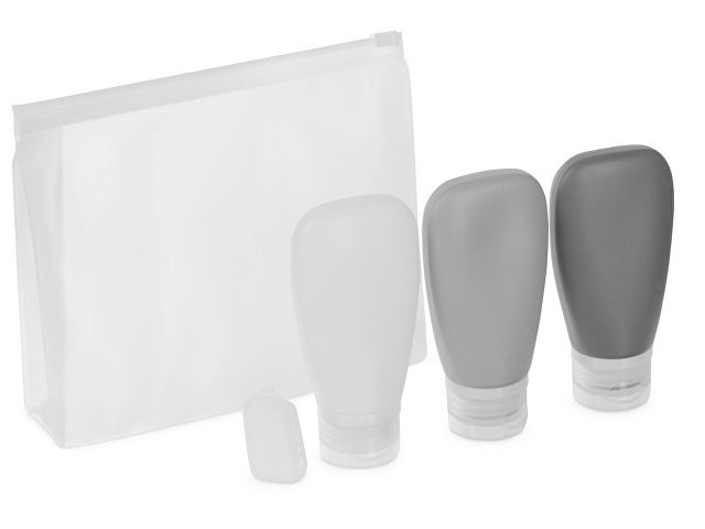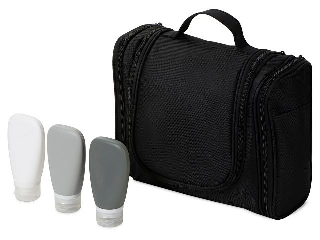 Набор "On air" состоит из двух предметов: Несессер для путешествий. Эргономичный и вместительный, имеет внутренние и внешние карманы и большое отделение внутри. Оснащён ручкой для переноски и крючком для подвешивания. Нейтральный лаконичный дизайн позволяет преподнести несессер как мужчине, так и женщине; Силиконовые ёмкости для косметических средств. Три флакончика по 90 мл каждый пригодятся для коротких поездок, а еще они вписываются в лимит большинства авиакомпаний по провозу жидкости в ручной клади. - силиконовые флакончики упакованы в полупрозрачную косметичку из EVA; - колпачок для зубной щётки в комплекте; - в несессере предусмотрены резинки и кармашки для мелких предметов, например, бритвенного станка.