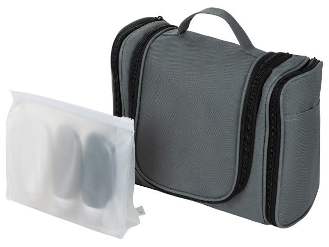 Набор "On air" состоит из двух предметов: Несессер для путешествий. Эргономичный и вместительный, имеет внутренние и внешние карманы и большое отделение внутри. Оснащён ручкой для переноски и крючком для подвешивания. Нейтральный лаконичный дизайн позволяет преподнести несессер как мужчине, так и женщине; Силиконовые ёмкости для косметических средств. Три флакончика по 90 мл каждый пригодятся для коротких поездок, а еще они вписываются в лимит большинства авиакомпаний по провозу жидкости в ручной клади. - силиконовые флакончики упакованы в полупрозрачную косметичку из EVA; - колпачок для зубной щётки в комплекте; - в несессере предусмотрены резинки и кармашки для мелких предметов, например, бритвенного станка.