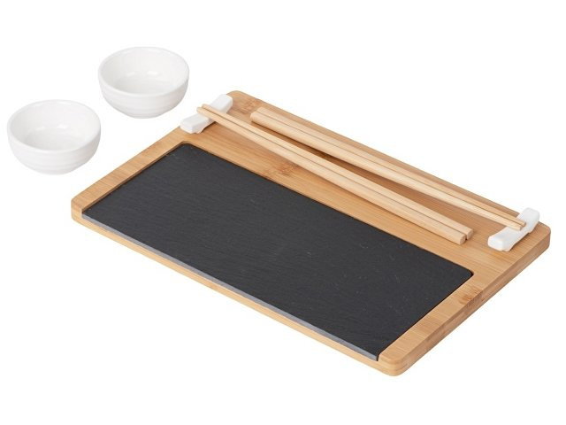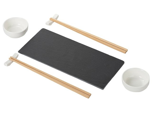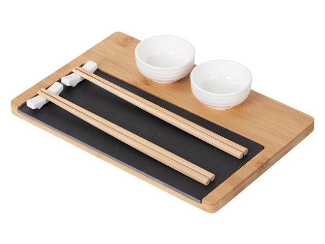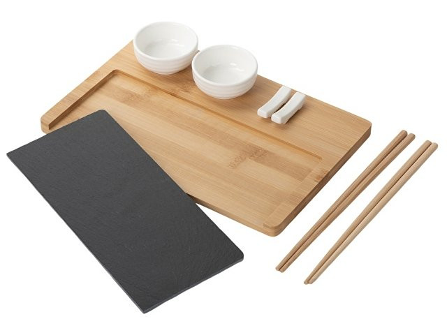 Набор для суши "Maki" – идеальный выбор для ценителей японской кухни, объединяющий стиль и практичность. Комплект включает всё необходимое для красивой и удобной сервировки суши и других азиатских блюд: - Две керамические пиалы для соусов или гарниров, идеально подходящие для подачи соевого соуса, васаби, имбиря и других приправ. - Две керамические подставки для палочек, которые обеспечивают удобство и чистоту, удерживая палочки на месте и защищая их от контакта с поверхностью стола. - Две пары деревянных палочек, которые комфортно держатся в руке и добавляют аутентичности процессу трапезы. - Бамбуковая доска-подставка добавляет натурального акцента и служит базой для подачи, позволяя разместить блюда на стильной основе. - Сланцевая доска из натурального камня придаёт элегантность сервировке и сохраняет прохладу подаваемых блюд, что особенно важно для суши и сашими. Каждый элемент упакован в защитную вставку-ложемент внутри коробки, обеспечивая безопасность при транспортировке и удобство хранения. Этот стильный и продуманный суши-набор идеально подойдёт для дома, подарка или для создания атмосферы настоящего японского ресторана прямо за вашим столом.