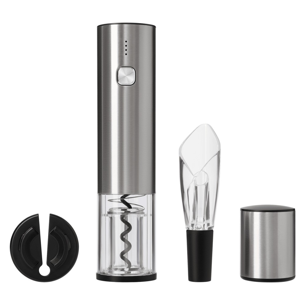 В стильной упаковке вы найдете все необходимое для идеального винного вечера: электрический штопор, вакуумную пробку, аэратор и нож для срезания фольги. Этот набор станет прекрасным корпоративным подарком или отличным дополнением к домашнему бару.