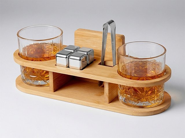 Набор для виски на бамбуковой подставке "Boulevardier" достаточно практичен - он состоит из 10 предметов, которые позволят правильно сервировать виски или какой-либо другой напиток. Все элементы набора компактно размещены на специальной подставке из бамбука, в которой для каждого предмета есть свое место — это позволяет экономить место на кухне или в столовой. Бокалы для виски (2 шт.) — изготовлены из ударопрочного боросиликатного стекла, на стенках бокалов - узор, который позволит напитку заиграть по-новому. Подставки для бокалов (2 шт.) — костеры из бамбука защитят стол и дно бокалов от царапин и капель напитка, обеспечив бесшумность при использовании. Кубики из нержавеющей стали (4 шт.) — металлические кубики, содержащие запаянную внутри смесь воды и глицерина, помогут быстро охладить виски. В отличие от ледяных кубиков, металлические не будут разбавлять напиток по мере нагрева, сохраняя истинный вкус. Щипцы для кубиков (1 шт.). Подставка (1 шт.),на которой компактно размещены все предметы набора. Выполнена из бамбука. - прочные и долговечные материалы; - подставка для удобного хранения; - объём одного бокала 350 мл; - бокалы можно мыть в посудомойке; - готовый сет для подарка.