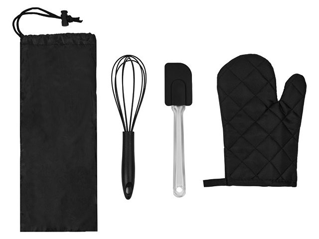 Набор Canele состоит из трёх предметов, без которых не обходится приготовление ни одного пирога или торта: венчика для взбивания яиц или крема, лопатки и прихватки для горячего. Силиконовая лопатка не царапает посуду, безопасна при нагревании, и к ней не прилипает тесто. Венчик также сверху покрыт силиконом, что позволяет его использовать с любыми ёмкостями, не боясь их повредить. Прихватка с одной стороны стёганая, а с другой абсолютно гладкая, благодаря чему на ней эффектно будет смотреться нанесённое изображение. Все предметы сложены в специальный мешочек, который также можно брендировать. • Функциональность • Лаконичный дизайн • Большая поверхность под нанесение