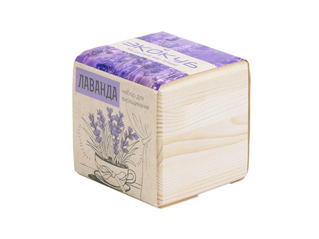 Экокуб – это современный набор для выращивания растения в домашних условиях. Вы получаете все необходимое от семян и грунта до подробной инструкции по уходу за сеянцем. Также экокуб станет отличным украшением вашего интерьера, ведь он сделан из натурального дерева и будет радовать вас ни один месяц. Лаванда – красивое ароматическое и лекарственное растение и живой помощник на все случаи жизни. Приятный горьковато-пряный аромат этих цветов не спутаешь ни с чем. Лаванду издавна почитали народы Средиземноморья как средство от всех болезней, а парфюмеры и косметологи называют это растение душой Прованса и одним из его символов, так как лучшие по свойствам и качеству цветы выращивают именно в этой легендарной области Франции. Небольшой пышный куст с колосовидными синими или сиреневыми соцветиями послужит украшением интерьера, наполняя воздух приятным ароматом гармонии и спокойствия. Достаточно посадить семена в уже готовый питательный грунт и время от времени увлажнять почву. Взрослое растение становится еще менее прихотливым к поливу, прекрасно выдерживая даже недостаток влаги. Оптимальной температурой для лаванды является обычная комнатная, или 15-25⁰С. А светлое место без сквозняков станет комфортной средой обитания растения. Спустя 2 недели после начала цветения соцветия срезаются и высушиваются, или же используются в свежем виде. Пересаживать декоративную лаванду не обязательно, но если растению станет тесно, то лучшим временем является весна.