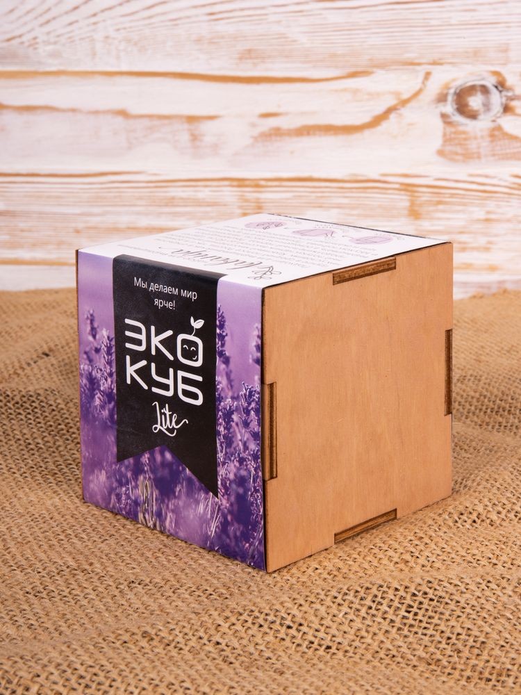 В наборе: деревянный куб, бумажный стаканчик, питательный грунт, семена, вермикулит.