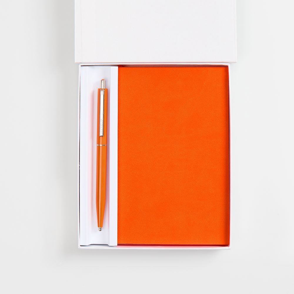 Миниатюрный набор со стильным ежедневником в гибкой обложке с покрытием софт-тач и ручкой интересной формы. Все составляющие сложены в компактную коробку с ложементом, которая придает набору аккуратность.