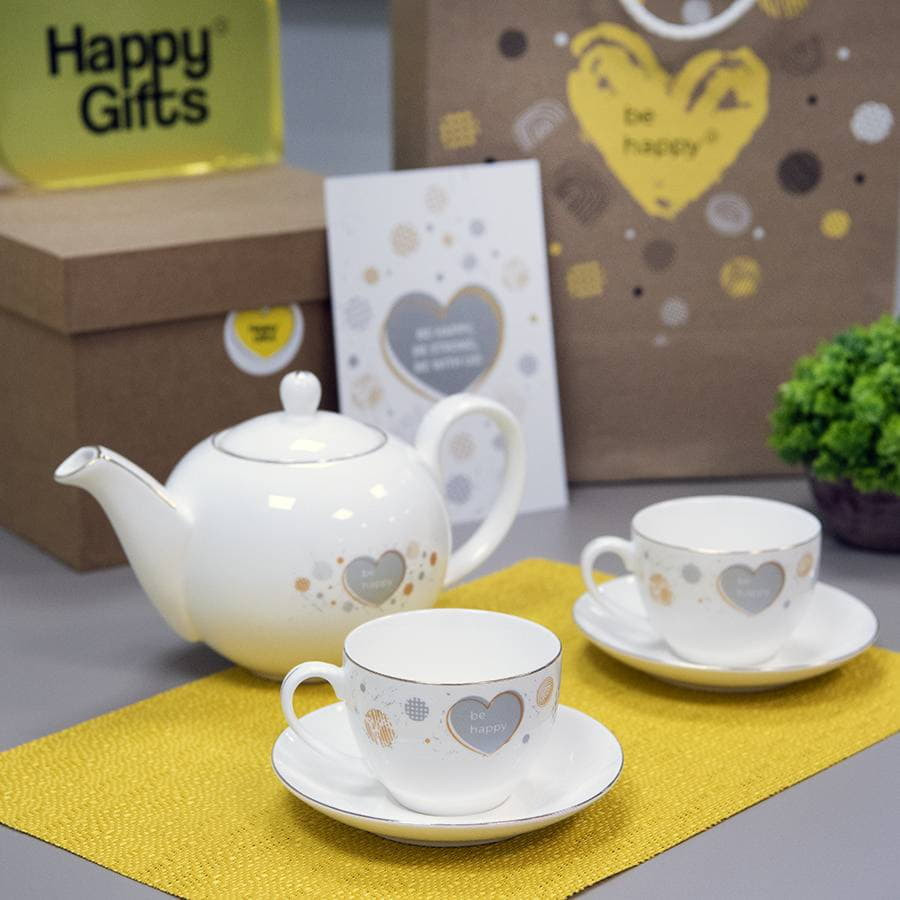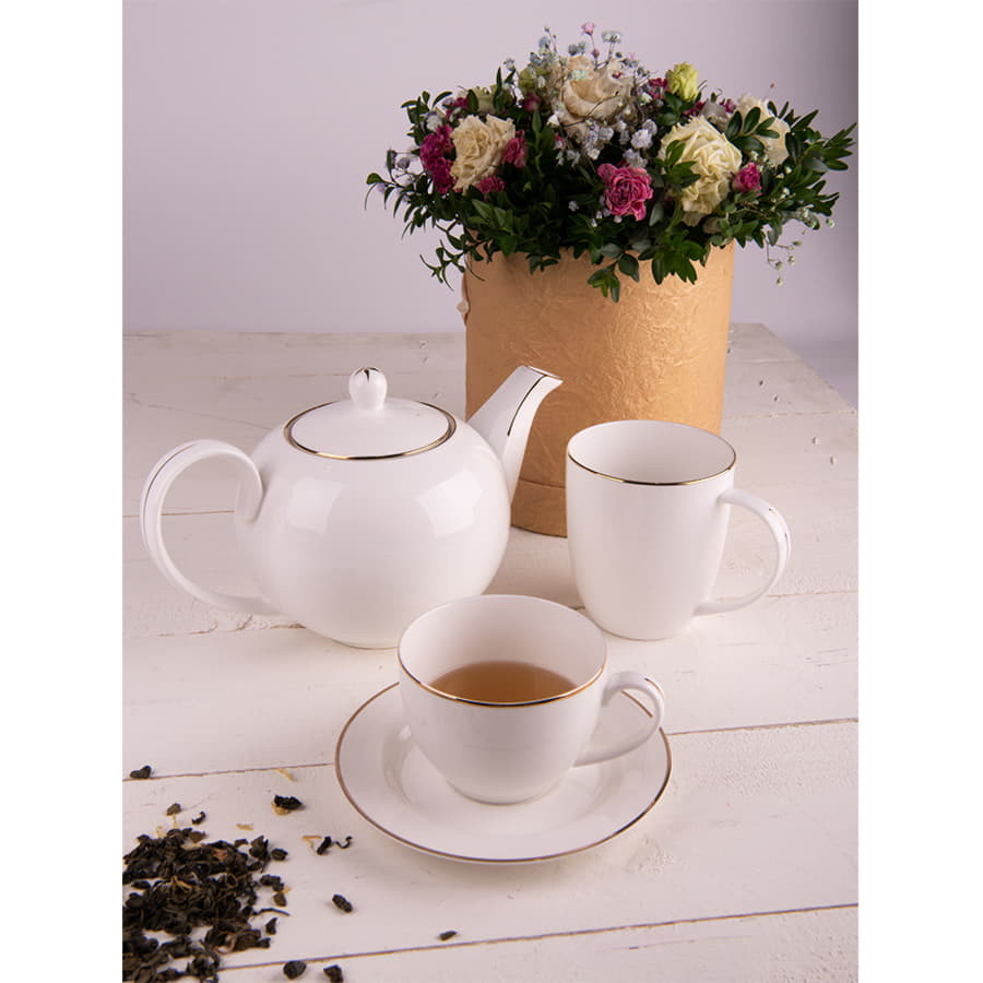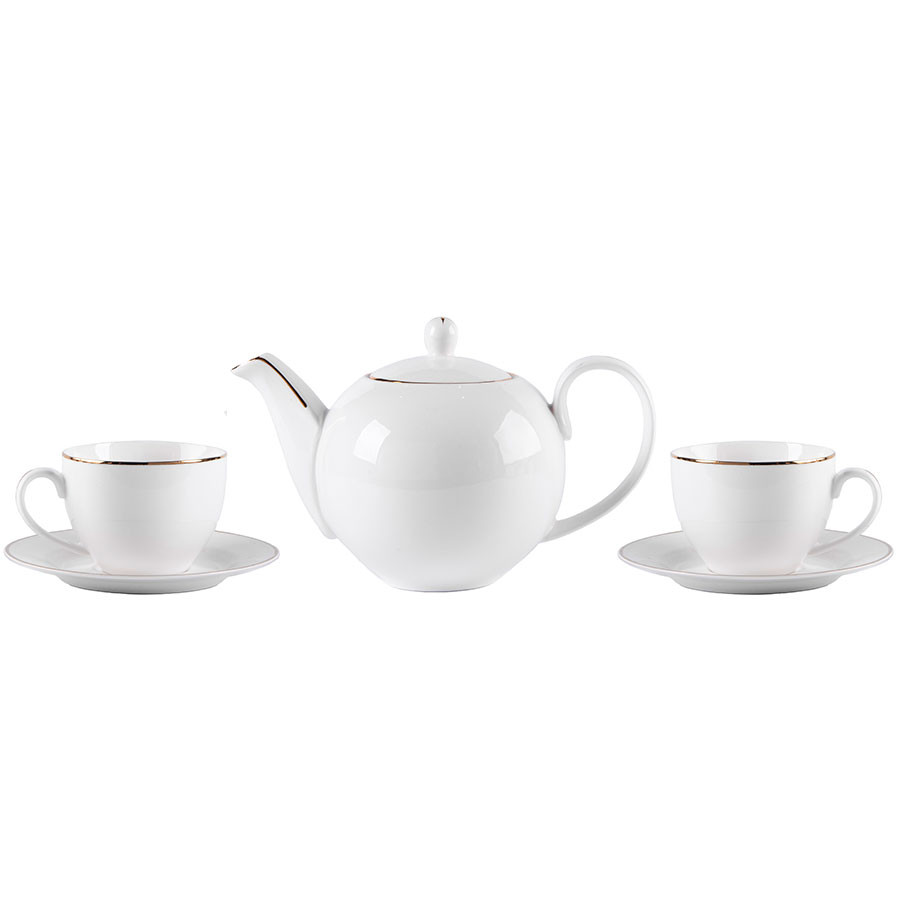 Чайник и две чайных пары GOLD в упаковке, 250мл и 1200мл, костяной фарфор, белый
