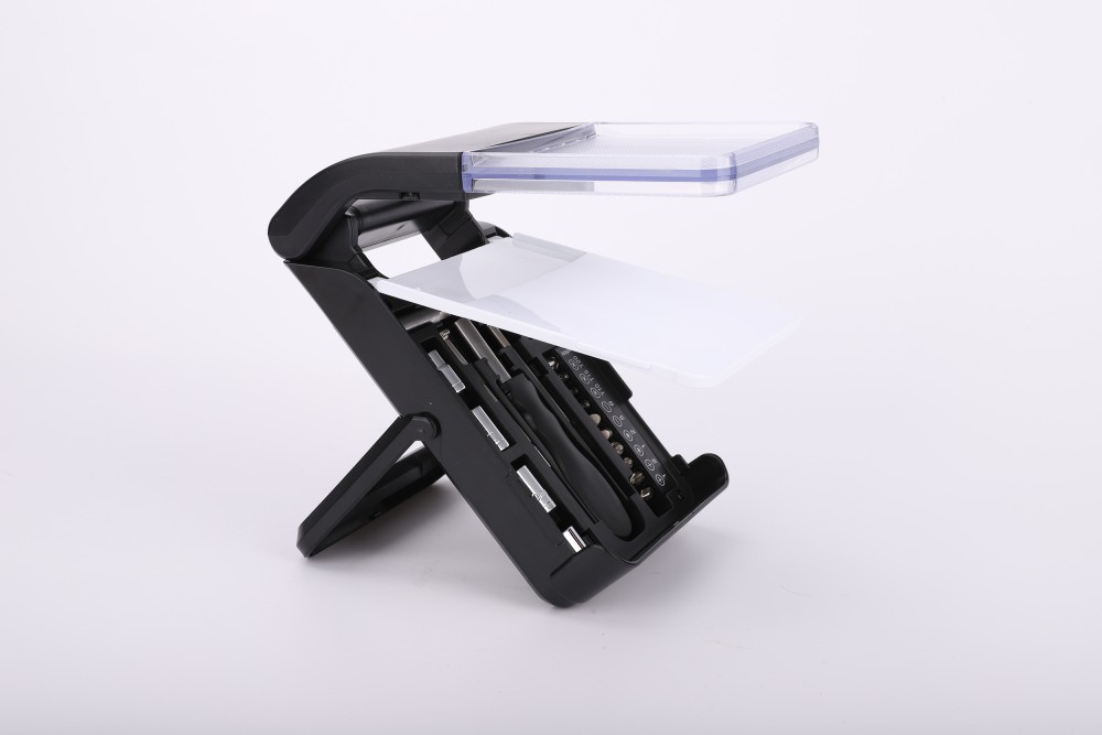 Встроенный LED-фонарь позволяет направить поток света под нужным углом. Фонарь работает от 4-ех батареек (тип ААА, нет в комплекте).