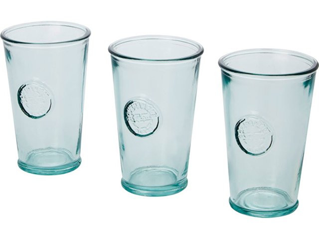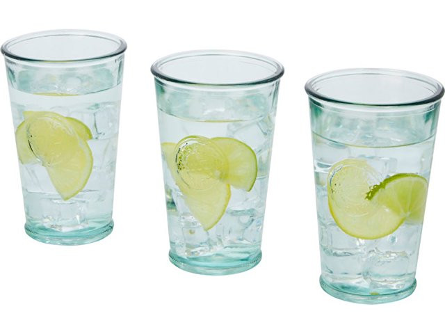 Набор из 3 стаканов объемом 300 мл, изготовленный из переработанного стекла. Для создания этого набора использована 1 стеклянная бутылка. Переработанное стекло не отличается ничем по качеству от обычного, но при этом является более экологичным, ведь на изготовление этого материала тратится меньше энергии, сырья и примесей. Размер стакана: высота 13 см, диаметр 8 см.