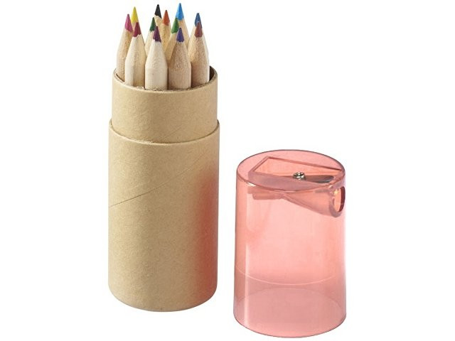 Набор из 12 маленьких карандашей в картонном стакане с точилкой.