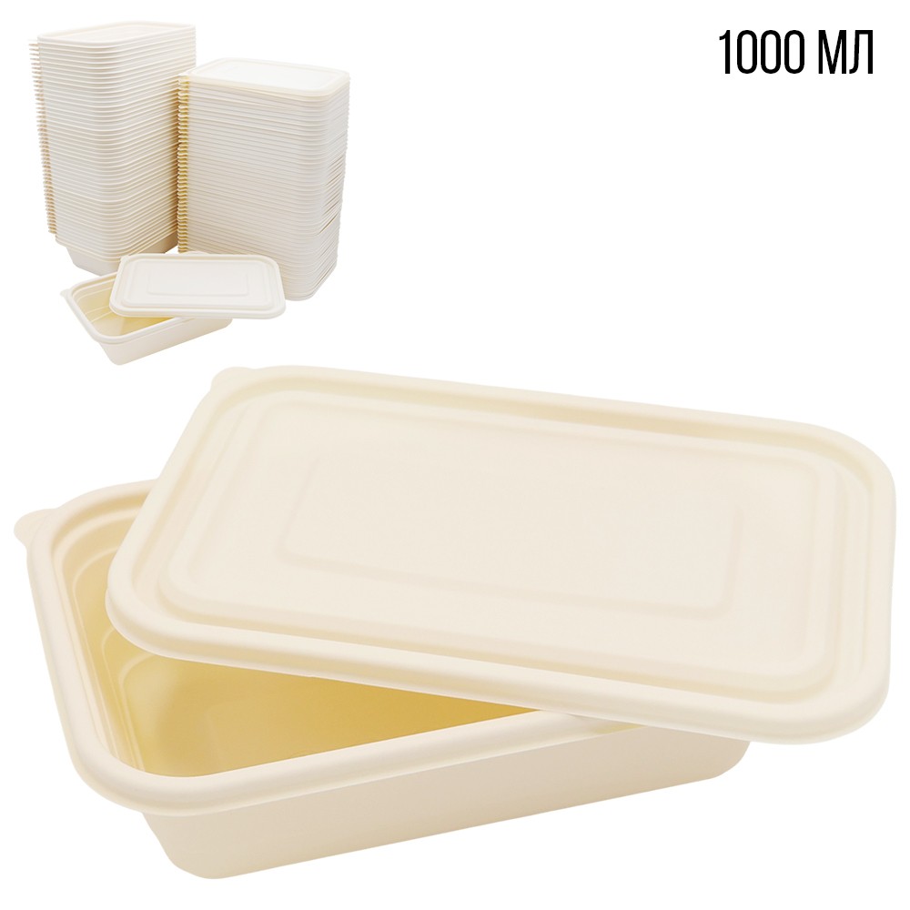 Когда вы отправляетесь на пикник или собираетесь в дальнюю автомобильную поездку, незаменимым атрибутом становятся одноразовые столовые приборы, стаканчики, тарелки и контейнеры. После использования, их можно утилизировать собственными силами без вреда для окружающей среды. Кукурузный крахмал – основное составляющее посуды. Он имеет все необходимые свойства, а также абсолютно безопасен для здоровья человека. Его используют и в пищевой, и в медицинской, и в текстильной промышленностях. Стойкость к разным температурным режимам – одно из важных свойств биоразлагаемой посуды. Такая посуда выдерживает как низкие, так и высокие температуры. Ее можно использовать в микроволновой печи и морозильной камере. Безопасность и отсутствие вредных соединений – основное преимущество посуды из крахмала. Биоразлагаемая посуда не содержит пагубных веществ, не засоряет окружающую среду. Экологичная упаковка для продуктов, которая не выделяет в пищу примесей и запахов даже при нагревании. Контейнер для еды с крышкой (1000 мл). В набор входит 50 шт. тарелок и 50 шт. крышечек к ним
