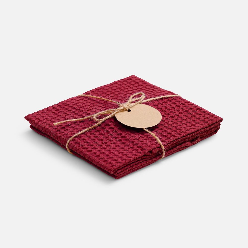 В набор входят 2 кухонных полотенца, перевязанных бечевкой с картонной биркой, на которую можно нанести логотип.