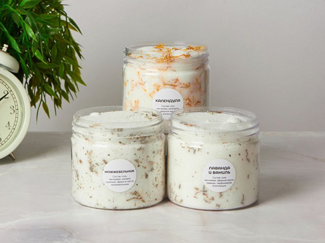 Магниевая соль для ванн — это прекрасный способ провести время не только с удовольствием, но и с пользой для здоровья. В набор входит три банки соли с ароматами календулы, можжевельника и лаванды с ванилью. Такие ванны помогут справиться со стрессом и усталостью после напряженного рабочего дня или усиленной физической нагрузки. Они питают и увлажняют кожу, лечат воспаления и улучшают сон. Магний снимает спазмы и напряжение с мышц и позволяет быстрее восстановиться после микротравм при занятиях спортом. Ванны с английской солью можно принимать 2—3 раза в неделю по 15—20 минут. Соль рекомендуется растворять при температуре воды не ниже 37 градусов. - Польза для здоровья - Релакс эффект - Уход за кожей Лаванда и Ваниль. Состав: соль магниевая, эфирное масло лаванды, парфюмерная композиция Календула. Состав: соль магниевая, календула, эфирное масло апельсина Можжевельник. Состав: соль магниевая. шалфей сушеный, эфирное масло можжевельника