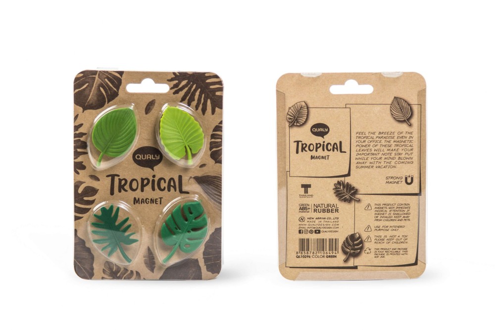Почувствуйте дуновение тропического рая даже в своем офисе. Магнитная сила этих тропических листьев заставит вашу важную записку оставаться на месте, пока ваш разум не унесется с ума предстоящими летними каникулами. Декоративные магниты "Тропики" надежно удерживают все на месте. Декоративные магниты Qualy Design изготовлены из экологически чистого пластика (смесь зеленого ABS и натурального каучука). С этими магнитами вы можете хранить свои заметки, фотографии, открытки, сообщения и все, что должно приклеиться к холодильнику или магнитной доске. Магниты поставляются в красивом наборе из 4 штук - оригинальный цветочный подарок! Размер 105х10х150 мм