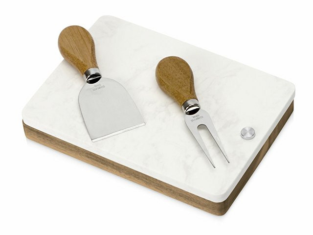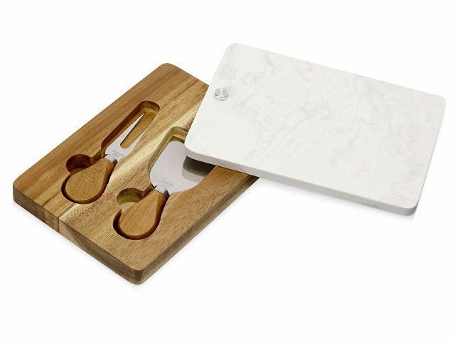 Набор для сыра бренда Eat&Bite Select состоит из ножа и вилки в футляре. Высококачественные материалы — акация и искусственный мрамор — обеспечивают набору долгую жизнь и благородный внешний вид. Крышка футляра, выполненная из белого мрамора, благодаря своей твердости может использоваться как разделочная доска, а благородный внешний вид делает ее идеальным вариантом для сервировки сыров и закусок. Ручки ножа и вилки — из акации, удобной формы, и для каждого из приборов в деревянном футляре предусмотрена вырубленная ниша, обеспечивающая бережное хранение приспособлений.