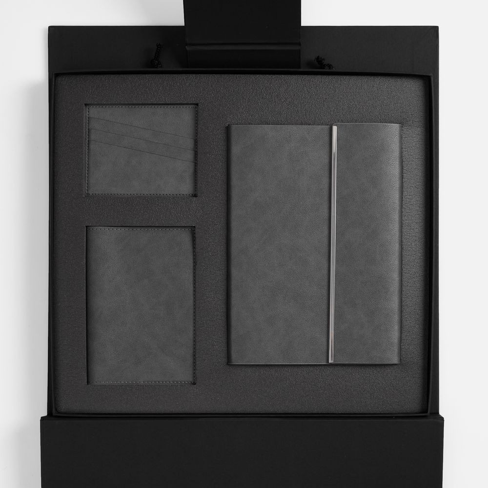 Набор с ежедневником и персональными аксессуарами из коллекции Petrus в подарочной коробке с ручками может быть как изящным деловым подарком, так и строгим личным.