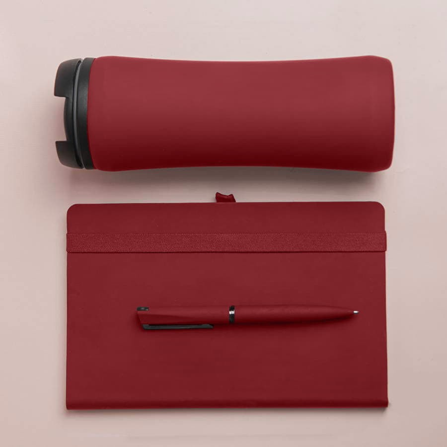 Набор подарочный OFFICEKIT: термос, ежедневник, ручка, стружка, коробка, зелёный, Красный