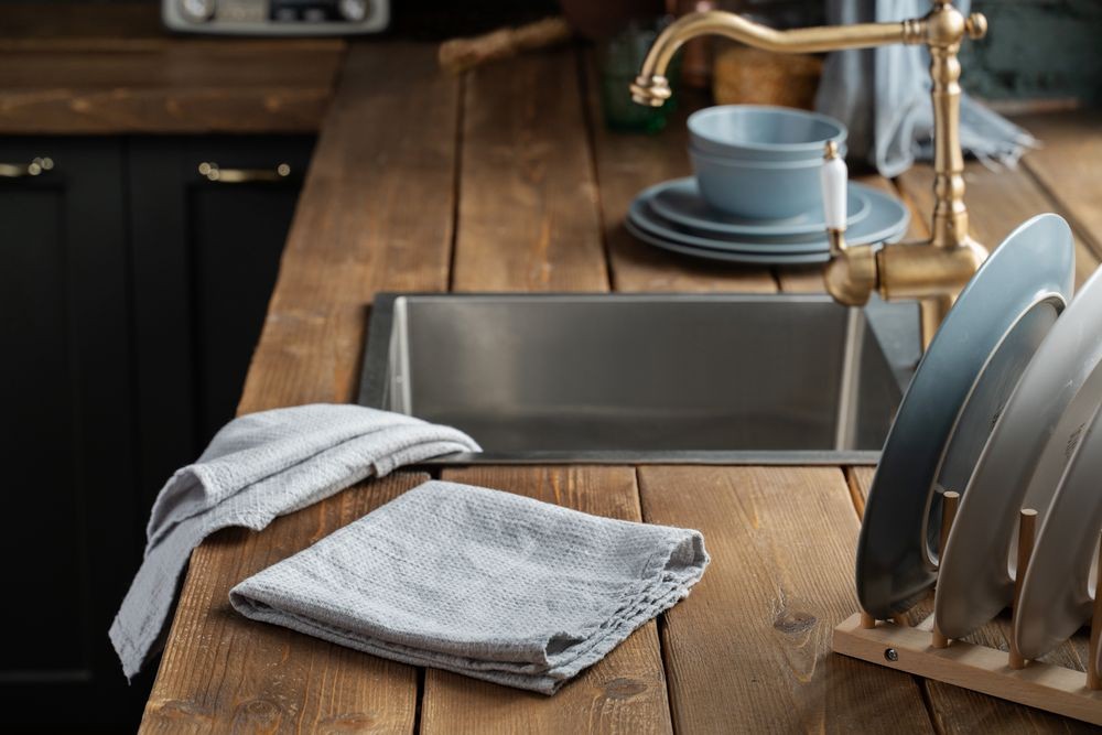В набор входят два кухонных полотенца с петлей для подвешивания.