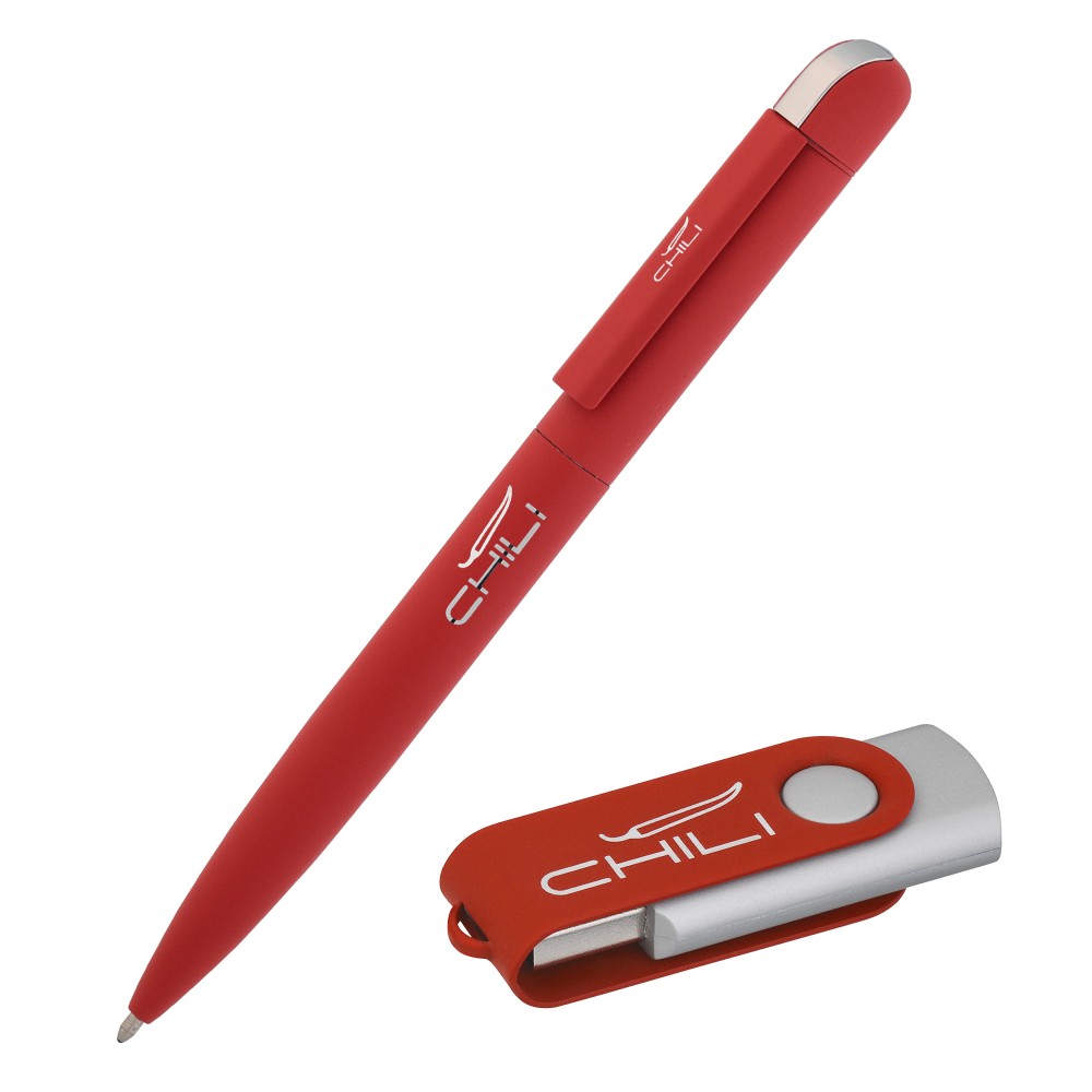 Бестселлер коллекции CHILI - Набор ручка "Jupiter" + флеш-карта "Vostok" в оригинальном футляре-конструкторе из материала EVA. Особого внимания заслуживает конструкция упаковки - комплектующие набора укладываются в двусторонний ложемент, который также можно персонализировать методом гравировки (газовый СО-лазер). Футляр закрыт шубером из черного картона. Рекомендуем посмотреть 3D-фото для детального представления об устройстве упаковки.