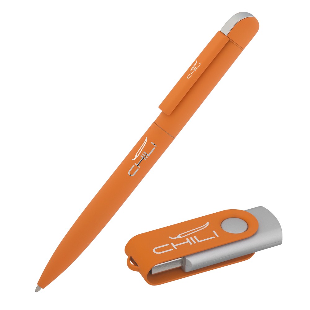 Набор ручка "Jupiter" + флеш-карта "Vostok" 16 Гб в футляре, покрытие soft touch, оранжевый