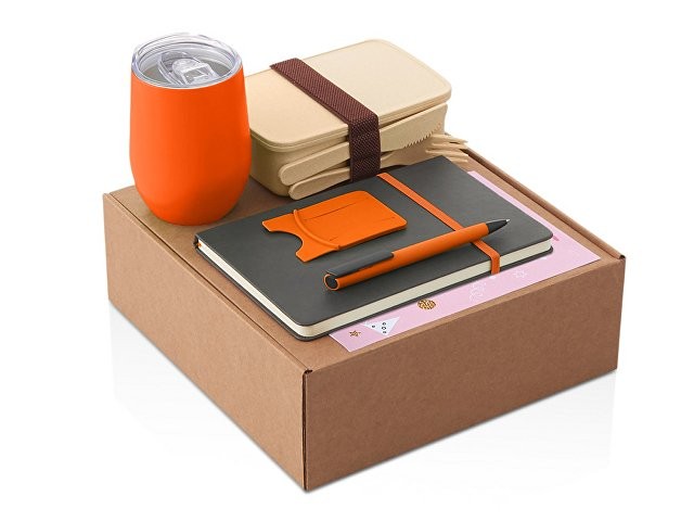 Функциональный и сбалансированный набор для сотрудников, партнёров или клиентов — отлично подойдёт для welcome-боксов, тимбилдингов, внутренних мероприятий и корпоративных праздников. Состав набора: • Блокнот — удобный формат для записей, брифов и ежедневных задач • Ручка — классическая, с необычным слайдером и приятной soft-touch поверхностью делает письмо более комфортным. • Универсальная термокружка «Sense» понравится как любителям горячих напитков, так и холодных, ведь она сохраняет напитки горячими в течение 6 часов, а холодными - 12 часов. Подходит для офиса и поездок • Ланчбокс — компактный и легкий, для здоровых перекусов и экономии времени. Для дополнительной надежности ланчбокс перехвачен упругой резинкой, которая помогает удерживать крышку на месте. Эта же резинка служит фиксатором для столового набора, который идет в комплекте — вилки, ножа и ложки. • Силиконовый картхолдер для телефона с держателем крепится на заднюю панель смартфона и заменяет кошелёк в повседневной суете. Удобно для пропусков и карт. • Открытка — элемент персонализации, в комплект можно вложить индивидуальное послание • Универсальный ложемент обеспечивает аккуратное размещение и надёжную фиксацию элементов, делая набор эффектным и презентабельным при вручении. • Дополнительное преимущество — набор доступен в конструкторе наборов: компоненты можно заменить и собрать индивидуальный вариант под стиль компании или вкусы получателя. • Готовое решение для корпоративных подарков • Все элементы функциональны и актуальны для повседневного использования