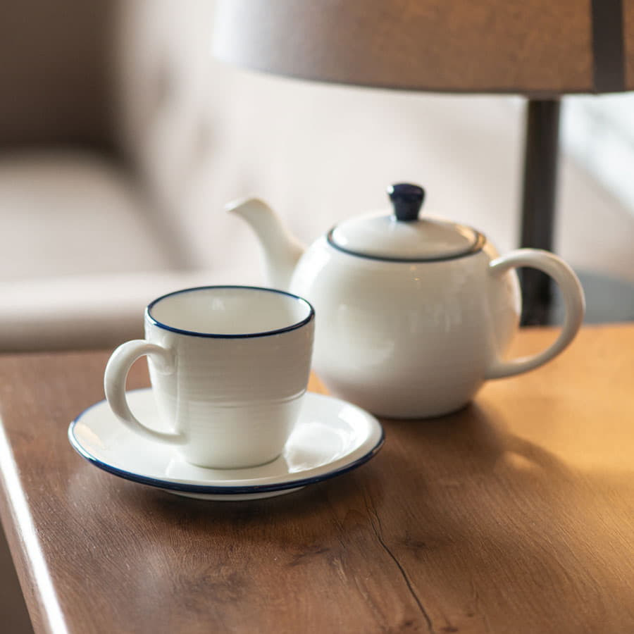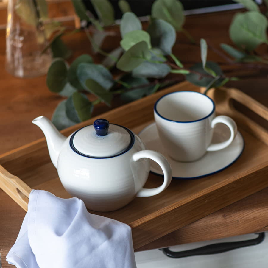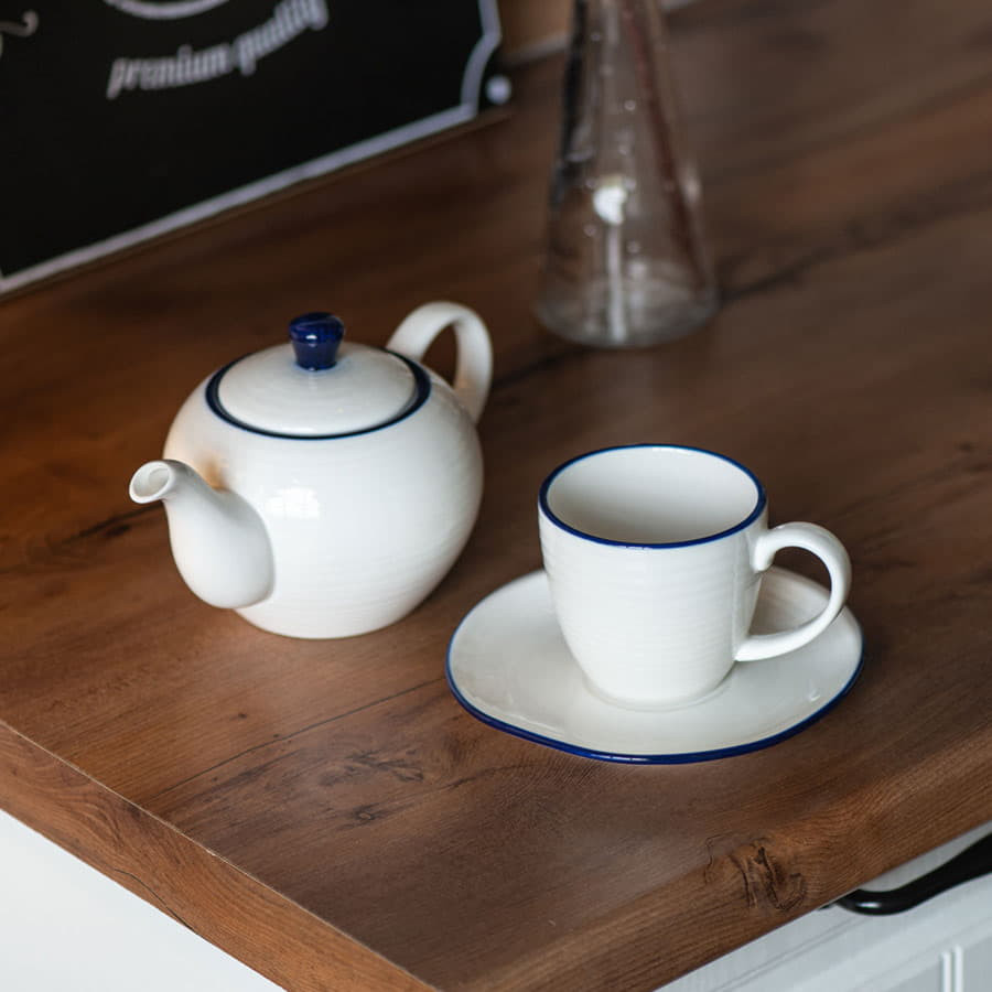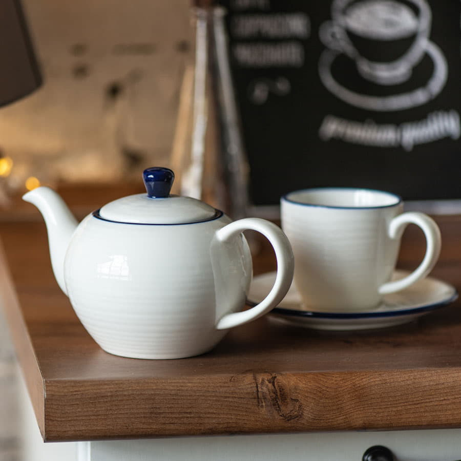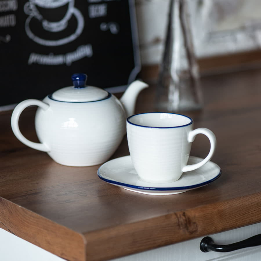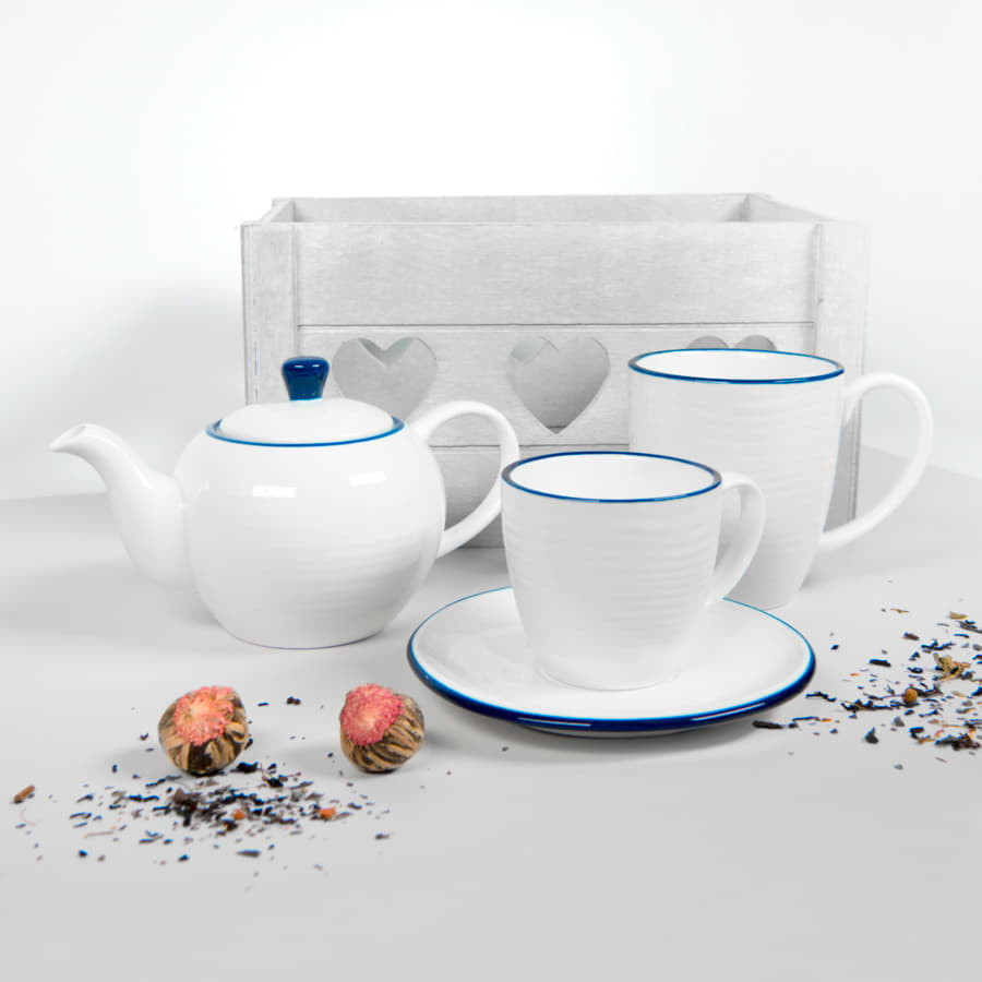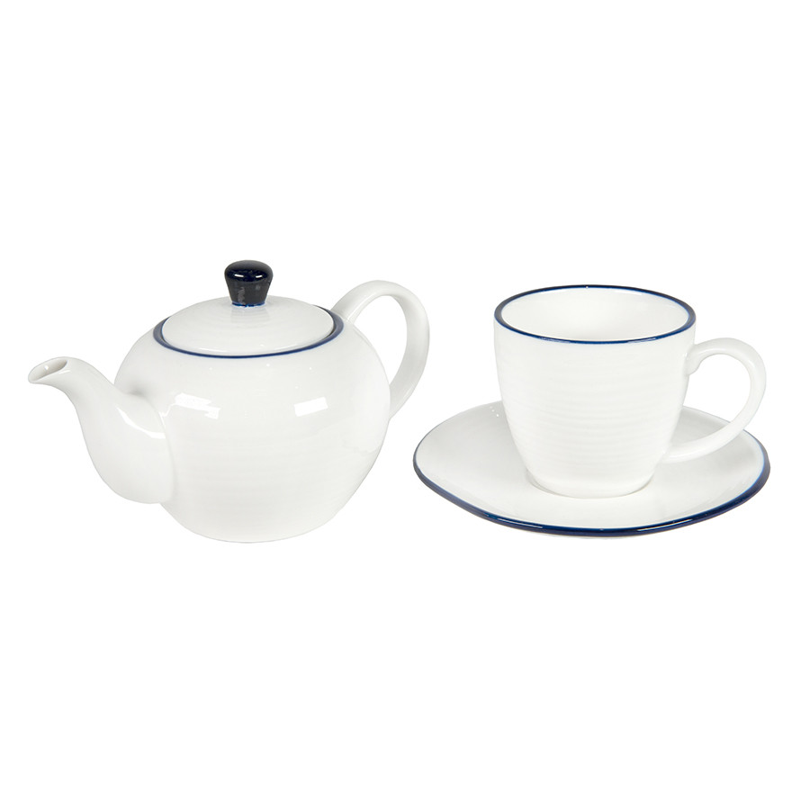 Чайник и чайная пара SEAWAVE в упаковке, 200мл и 500мл, фарфор, белый, синий