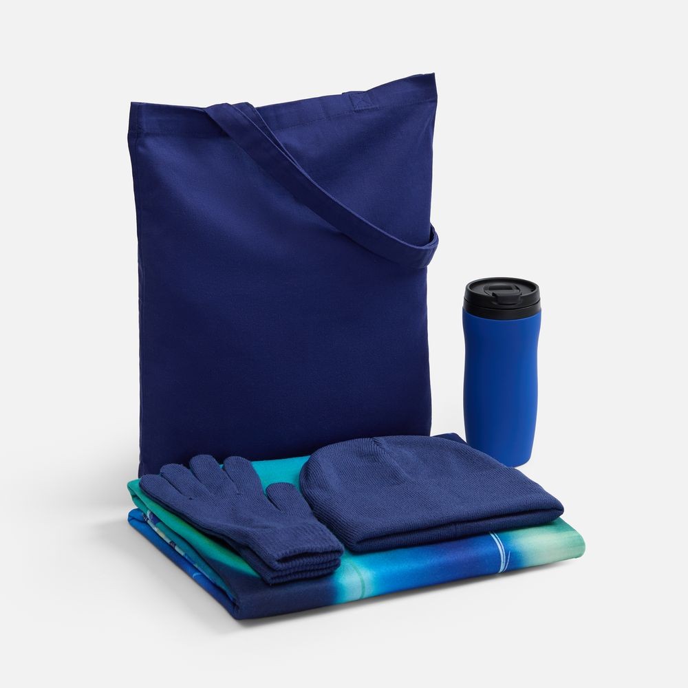Набор «Северное сиятельство» — это выражение заботы и нетривиальный комплимент в одном шопере! В нем тонко переплетены дух современного города и очарование северной сказки. Его элементы лаконичны и функциональны, а главная изюминка — живописный плед с изображением aurora borealis — добавляет ноту настоящего чуда.