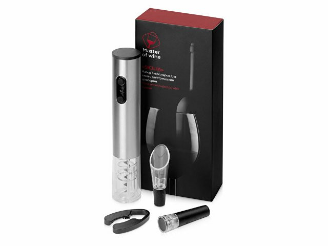 Набор «Sicilia» от Master of Wine состоит из электрического штопора из нержавеющей стали, пробки для вина, аэратора и ножа для фольги — с ним вы сможете откупорить вино и подготовить его к употреблению наилучшим образом. Штопор работает на батарейках АА (4 штуки) и при работе подсвечивается синим, что прекрасно видно сквозь прозрачную нижнюю часть — превратите подготовку вина в настоящее зрелище! От вас не требуется никаких усилий: просто правильно разместите штопор поверх горлышка и нажмите кнопку, а если процесс не кажется вам очевидным — поможет инструкция, которая приложена к набору. Аэратор-воронка плотно фиксируется на горлышке благодаря силиконовой вставке, проходя сквозь него напиток обогатится кислородом, что поможет раскрыть его вкус. Воронка же не даст капелькам пролиться мимо бокала. Вакуумная пробка решит вопрос недопитого остатка: сохраните вино на следующий день, несколькими движениями откачав воздух из бутылки. Нож для фольги надевается на запечатанную пробку сверху и проворачивается, срезая фольгу круглыми маленькими ножами. - набор упакован в коробку с бархатным ложементом - батарейки не включены в комплект - качественные материалы - набор позволяет полностью подготовить вино к подаче - все принадлежности просты в использовании