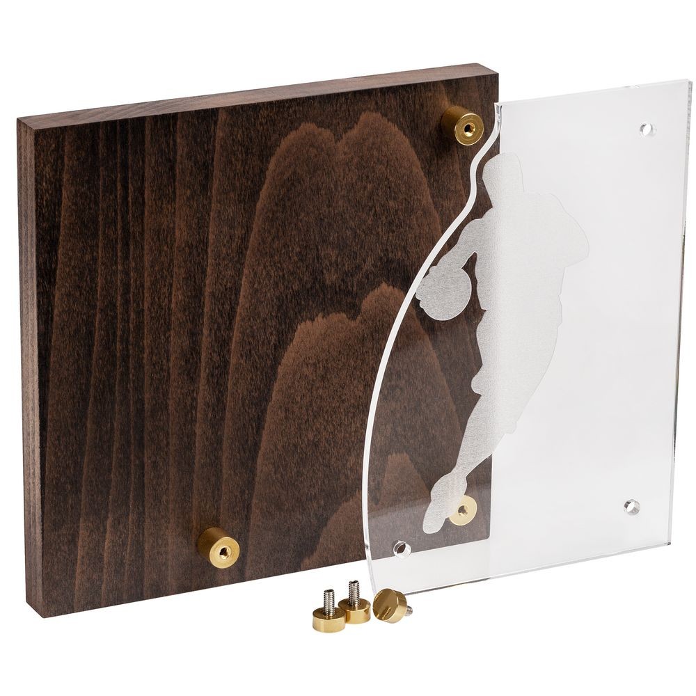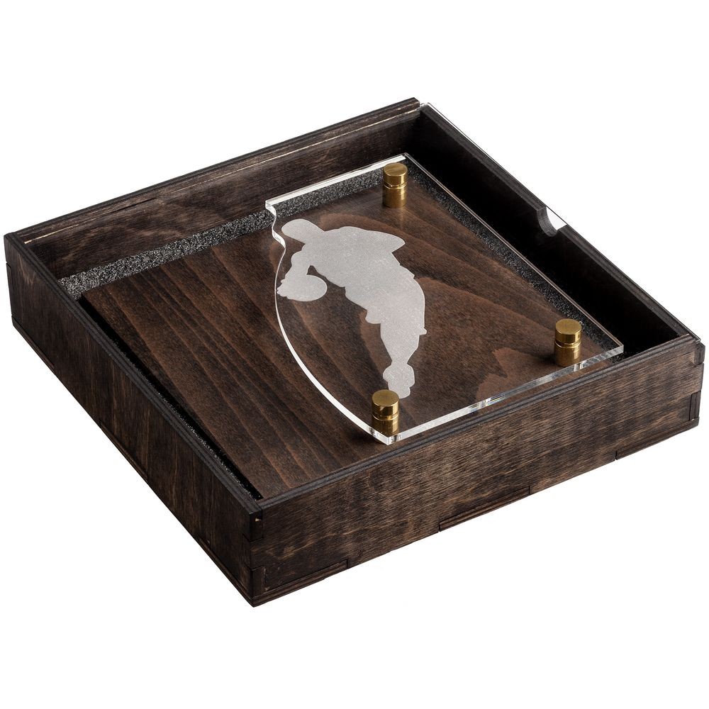 Награда поставляется в подарочной коробке из фанеры и акрила.Так как плакетка выполнена из натурального дерева, возможны различия в оттенке и рисунке основы.