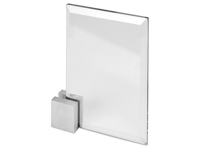 Минималистичная стеклянная награда с небольшим угловым постаментом из стали (не съемный). Внушительная площадь для нанесения обеспечивается простотой формы и маленьким размером постамента.