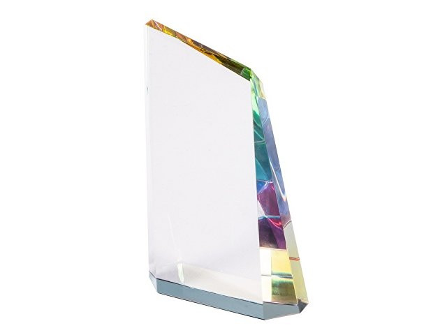 Награда выполнена из прозрачного стекла, переливающегося на свету всеми цветами радуги, и не имеет постамента. Под разными углами награда сияет разными цветами, а иногда и всем радужным спектром сразу. Благодаря необычной форме, напоминающей философский камень, и сиянию в лучах света она смотрится очень оригинально. • Интересный дизайн • Переливается всеми цветами радуги