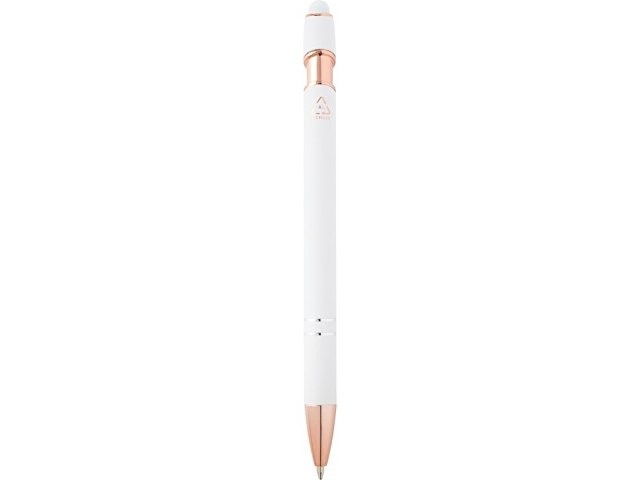 Шариковая ручка Nanna с покрытием из розового золота имеет корпус из переработанного алюминия и сенсорный стилус из силикона. Переработанный алюминий уменьшает количество отходов на свалках и помогает сохранять природные ресурсы для сокращения выбросов парниковых газов. Цвет чернил: синий. Длина непрерывной линии: 800 метров. Размер пера: 1,0 мм. Recycled Aluminium.
