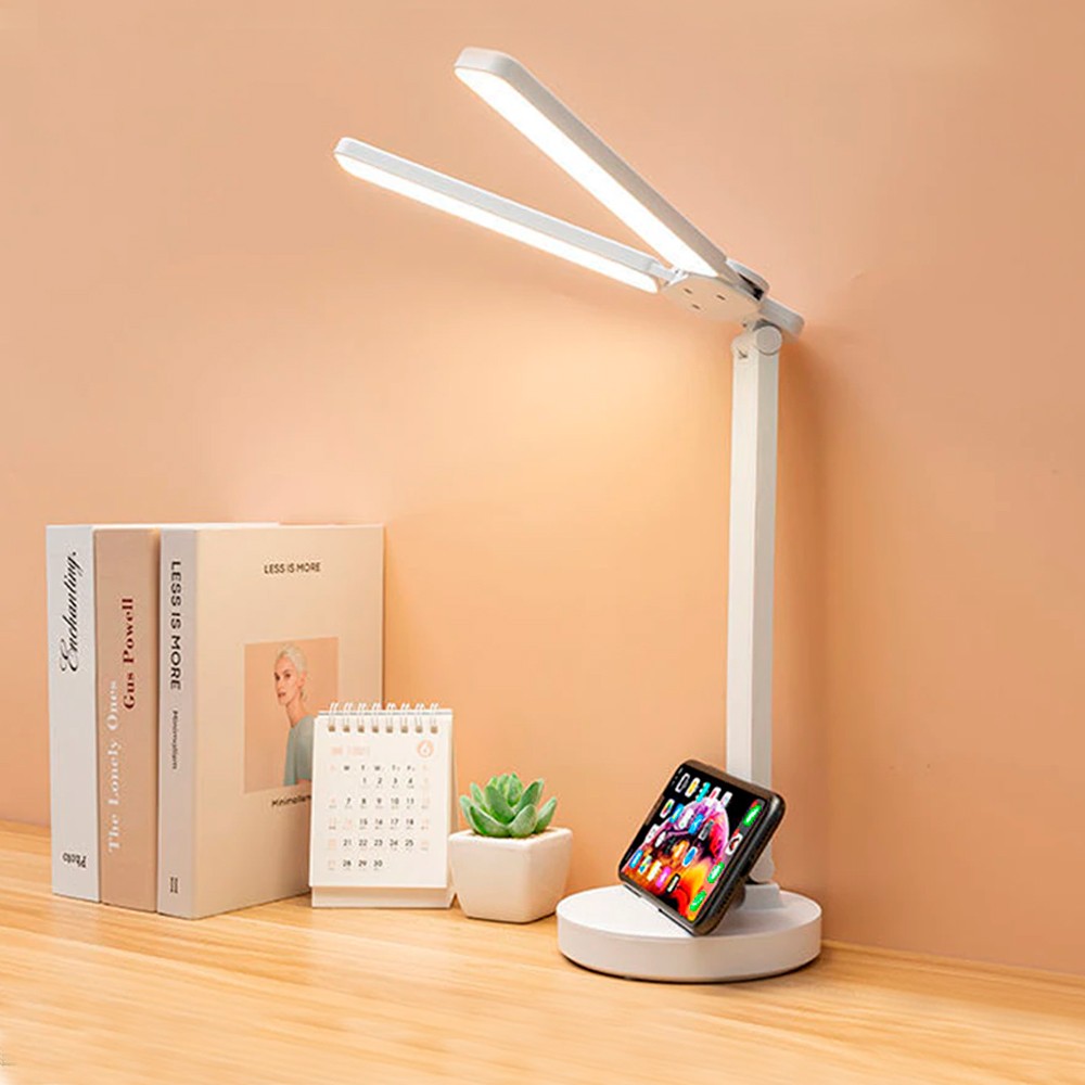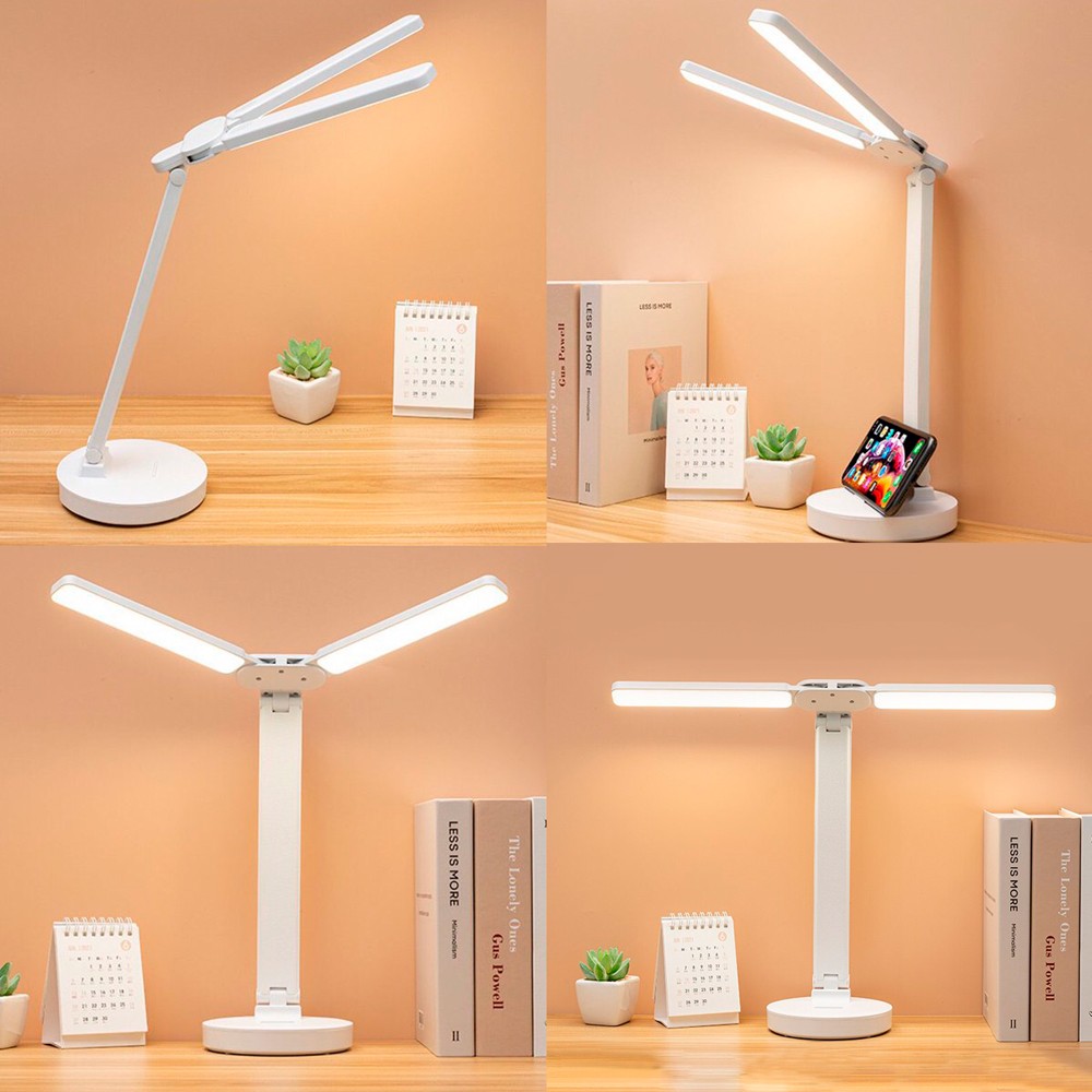 Настольная лампа Double современная настольная лампа, которая позаботится о ваших глазах (три цветовых температуры 3000K-4000K-6400K). Свобода от проводов обеспечена встроенным аккумулятор (емкость батареи 1200 mAh). Просто зарядите её и используйте там, где она нужена. Вход: 5V-2A / 3.7V (потребляемая мощность 5W). Световой поток ≈ 250 lm. Индексом цветопередачи >80 CRA. В комплекте кабель USB и инструкция.