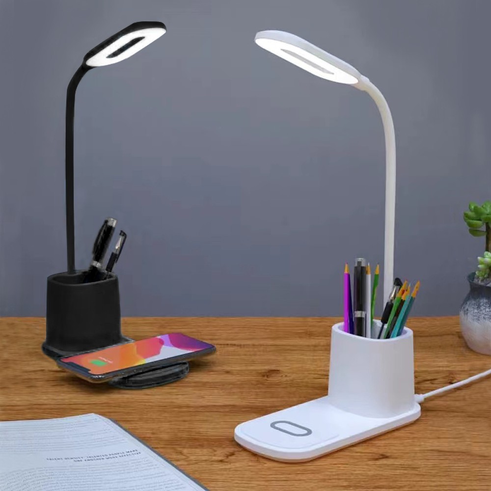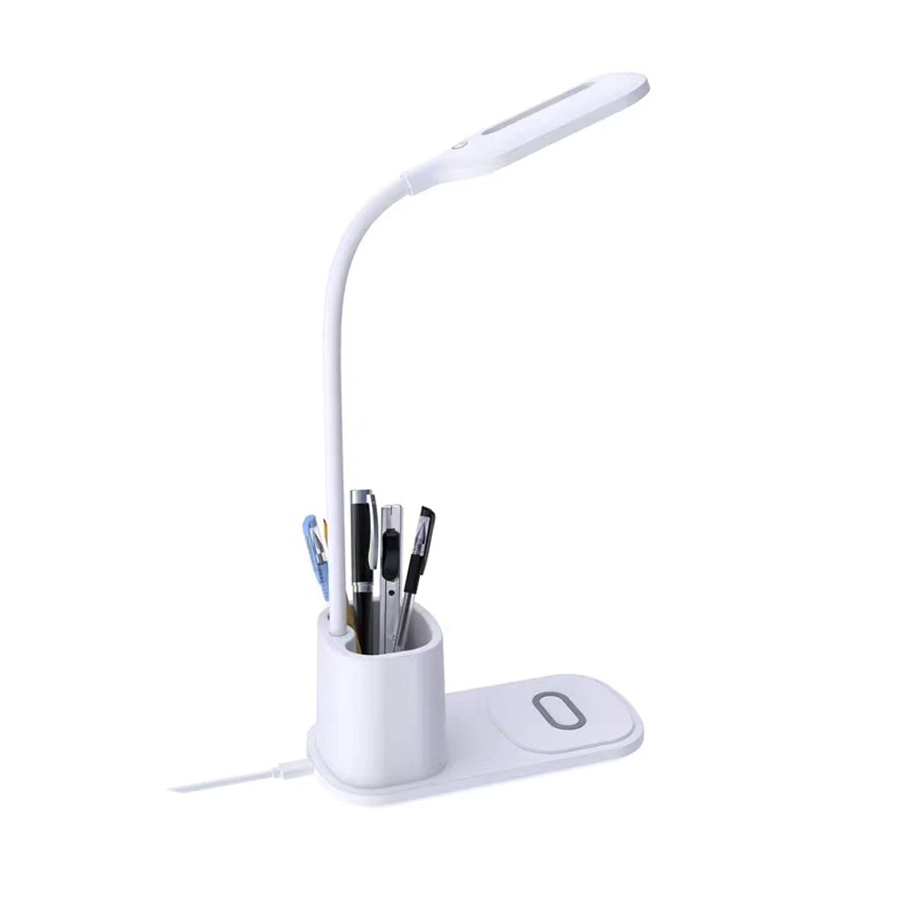 Практичная настольная лампа Tenza для использования в офисе и доме. Стильный лаконичный дизайн и гибкое поворотное регулирование лампы удобно в использовании как на офисном столе, так и прикроватной тумбе. Возможность выбирать степень яркости света несомненный плюс. Держатель для ручек дополняет функциональность. И безусловный лидер популярности – это функция беспроводной зарядки Qi. Тип лампы LED (0.5 x 20 световых диодов. Цветовая температура 3000-6000К). Беспроводная зарядка 10W. Питание: 5V/2A / 100~240V/50-60Hz. В комплекте кабель USB и инструкция. Размер в упаковке: 8,3*11*20,5 см Область зарядки смартфона поддерживает все Android/Ios устройства с функцией беспроводной зарядки. Для работы беспроводной зарядки необходимо подключать устройство к сети через адаптер.