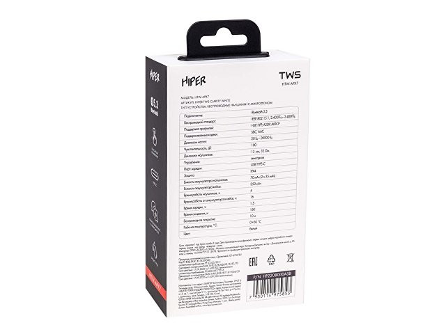 Компактные беспроводные TWS-наушники идеально подходят для повседневного использования, в том числе для спорта в зале и на улице. Дизайн наушников понравится ценителям современных эргономичных гаджетов. Модель не нагружена кнопками, поэтому регулировка громкости и переключение треков осуществляется с помощью чувствительных сенсорных кнопок. Силиконовые амбушюры не ощущаются при использовании. Ножка гарнитуры короткая, поэтому она не будет цепляться за воротник или шарф. Петля на корпусе делает дизайн гаджета футуристичным, а сам корпус не боится брызг воды, капель дождя и пота, так как защищен по стандарту IPX4. Беспроводные наушники могут использоваться для любых задач: прослушивания музыки, просмотра фильмов и разговоров. В них установлены динамики диаметром 10 мм, способные воспроизводить частоты в диапазоне от 20 Гц до 20 000 Гц. Реализована поддержка кодеков SBC, AAC — самых популярных при записи современных аудиодорожек. Встроенный микрофон обеспечит хорошую слышимость голоса владельца устройства для его собеседника. Ёмкость батареи каждого из наушников составляет 70 мАч, объем аккумулятора зарядного футляра в 350 мАч, что обеспечит непрерывное использование гаджета на срок до 16 часов. При этом в режиме ожидания гарнитура сохранит работоспособность до 180 часов. Восполнить запас энергии можно через кабель USB Type-C, который идет в комплекте.