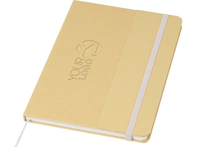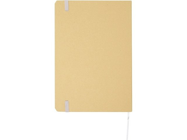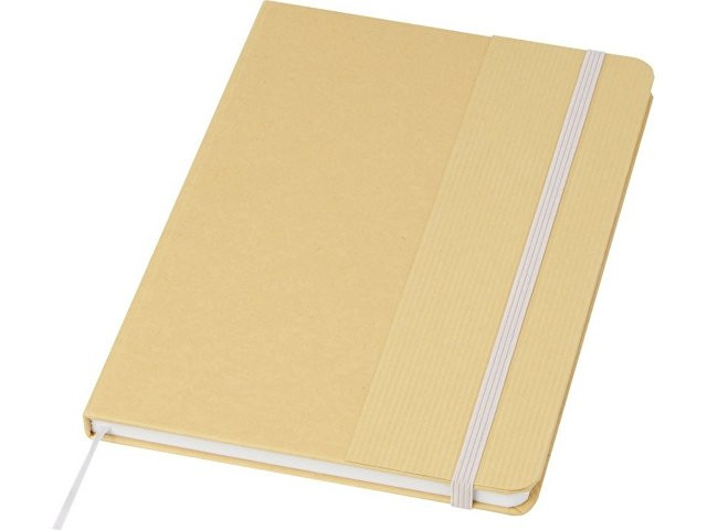 Блокнот формата А5 в твердой обложке из переработанного картона, 80 листов бумаги плотностью 70 г/м² в линейку. Блокнот имеет эластичную застежку, ленту и закругленные углы. FSC certified paper. FSC Mix 100% P7.1 CU-COC-877277.