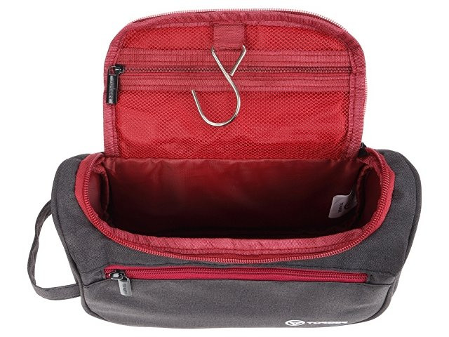 Несессер TORBER, дорожный, чёрный/бордовый, полиэстер 300D, 24 х 16 х 9 см