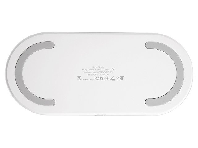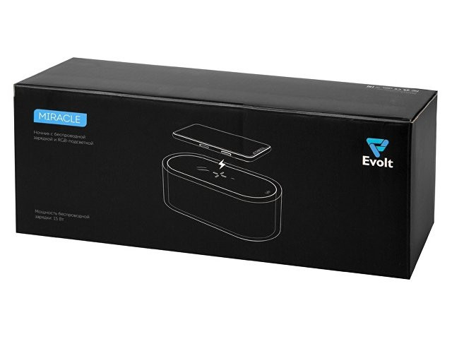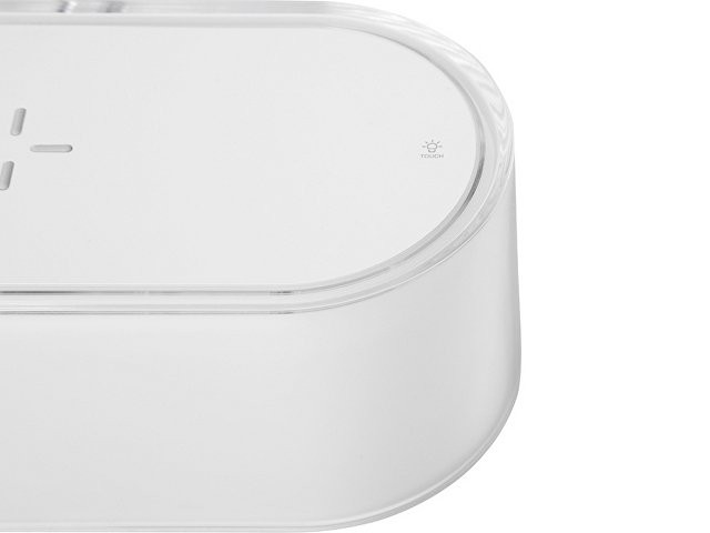 Ночник с RGB-подсветкой из 7 переливающихся цветов. Также есть режимы стандартного и яркого освещения теплым светом. Ночник выполняет функцию зарядной станции для устройств, поддерживающих беспроводную зарядку стандарта Qi мощностью 15 Вт*. Функция ночника работает без подключения к сети благодаря встроенному аккумулятору на 400 мАч. Функция беспроводной зарядки работает только при питании от сети. Устройство можно брендировать методом УФ-печати, тампопечати, а также цифровой печати. *при наличии сетевого адаптера 18 Вт, в комплект не входит. - быстрая беспроводная зарядка до 15 Вт - 3 режима работы подсветки - встроенный аккумулятор 400 мАч для работы ночника - удобная форма для нанесений