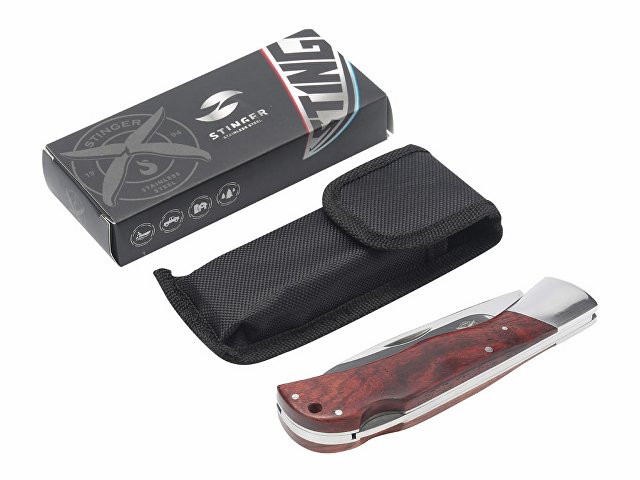 НОЖ СКЛАДНОЙ STINGER Материал лезвия: нержавеющая сталь марки 8Cr13 Материал рукояти: сталь + дерево Фиксатор лезвия: Back Lock Длина ножа: 220 мм Длина клинка: 92 мм Толщина клинка: 3 мм Вес: 161 г Цвет рукояти: серебристо-коричневый Особенности: с темляком Метод открывания клинка: за выемку на лезвии В комплекте: нейлоновый чехол, кожаный шнурок