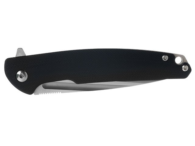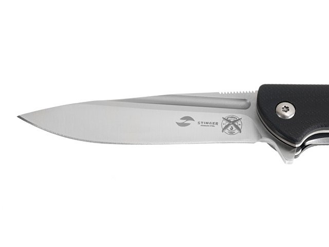НОЖ СКЛАДНОЙ STINGER Повседневный складной нож из высококачественных материалов, идеально подойдет для решения большинства задач. Рукоять ножа изготовлена из стали с накладками из стеклотекстолита G10 - композитного материала на основе стеклоткани и эпоксидной смолы. G10 является прочным и ударостойким материалом, отлично переносит влагу, отличается повышенной стойкостью к огню. Рукоять ножа собрана на втулках - “бонках”, поэтому при необходимости его можно легко промыть. На рукояти расположено отверстие для темляка и клипса для удобного размещения ножа в кармане. Нож открывается при помощи флиппера с ассистом (механизм ускоренного открывания), который может дополнительно выполнять роль гарды, предотвращая соскальзывание руки на лезвие клинка. На верхней части лезвия расположен подпальцевый упор с насечкой для более комфортной работы. Клинок ножа произведен из высокоуглеродистой стали D2, которая пользуется большой популярностью в ножевой индустрии из-за исключительных технических и эксплуатационных параметров. Высокое содержание хрома (11%) и углерода (1,5%) в составе повышают коррозионную стойкость и ударную вязкость сплава, делают его достаточно твердым. D2 имеет твердость по шкале Роквелла в диапазоне 59-61 HRC, что делает ее одной из самых твердых сталей для ножей и позволяет лезвию держать остроту длительный период времени даже при интенсивном использовании. D2 отличается высокой прочностью, устойчивостью к износу и разрушению, что позволяет клинку выдерживать удары и нагрузки. Благодаря высокой твердости и прочности клинок из стали D2 имеет долгий срок службы, обеспечивает качественный и точный срез и не требует частой заточки. Характеристики: Материал клинка: высокоуглеродистая сталь D2 Твердость по шкале Роквелла: 59-61 HRC Материал рукояти: нержавеющая сталь/стеклотекстолит G10 Метод открывания клинка: флиппер с ассистом (механизм ускоренного открывания) Фиксатор клинка: Liner Lock Длина ножа: 187 мм Длина клинка: 81 мм Толщина клинка: 4 мм Вес: 100 г Цвет рукояти: черный Особенности: рукоять с клипом и отверстием под темляк В комплекте: нейлоновый чехол