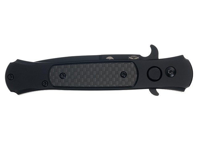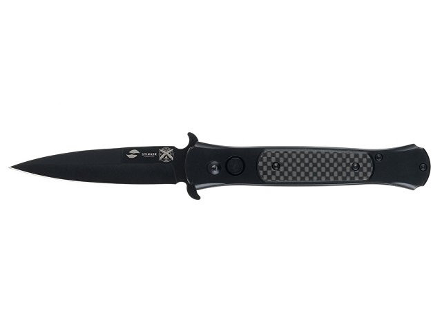 НОЖ СКЛАДНОЙ STINGER Автоматический складной нож из высококачественных материалов, идеально подойдет для повседневного использования. Рукоять ножа изготовлена из нержавеющей стали с накладками из карбона (углепластика) – это полимерный материал с композитным составом, изготовленный из переплетенных нитей углеродного волокна с использованием эпоксидных смол. Карбон является легким и исключительно прочным материалом, стойким к высоким температурам и агрессивным средам, отлично переносит влагу. Рукоять ножа собрана на втулках - “бонках”, поэтому при необходимости его можно легко промыть. На рукояти расположена съемная клипса для удобного размещения ножа в кармане. Нож мгновенно открывается и надежно фиксируется благодаря замку Button Lock. Дополнительные упоры на клинке могут выполнять функцию гарды, предотвращая соскальзывание руки на лезвие клинка. Клинок изготовлен из нержавеющей стали 8CR14MoV. Основное преимущество этой стали - отличное противодействие коррозии благодаря высокому содержанию хрома (14,5%). Сталь 8CR14MoV относится к высокоуглеродистым сталям (0,8%), углерод в составе придает сплаву твердость в диапазоне 57-59 HRC, что позволяет режущей кромке лезвия длительное время оставаться острой. Оптимальное содержание легирующих элементов придает стали гибкость, лезвие хорошо поддается правке и заточке. Клинок из стали 8CR14MoV отличается высокой прочностью и устойчивостью к износу, имеет долгий срок службы, обеспечивает качественный и точный срез. Характеристики: Материал клинка: нержавеющая сталь 8CR14MoV Твердость по шкале Роквелла: 57-59 HRC Материал рукояти: нержавеющая сталь/карбон Метод открывания клинка: автомат Фиксатор клинка: Button Lock Длина ножа: 205 мм Длина клинка: 87 мм Толщина клинка: 3,5 мм Вес: 154 г Цвет рукояти: черный Особенности: рукоять с клипом В комплекте: нейлоновый чехол