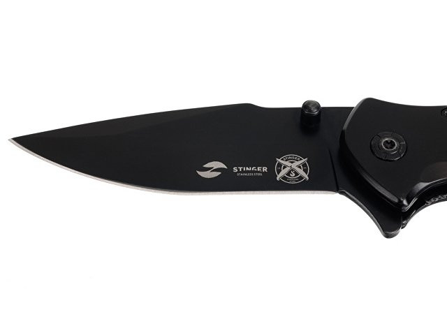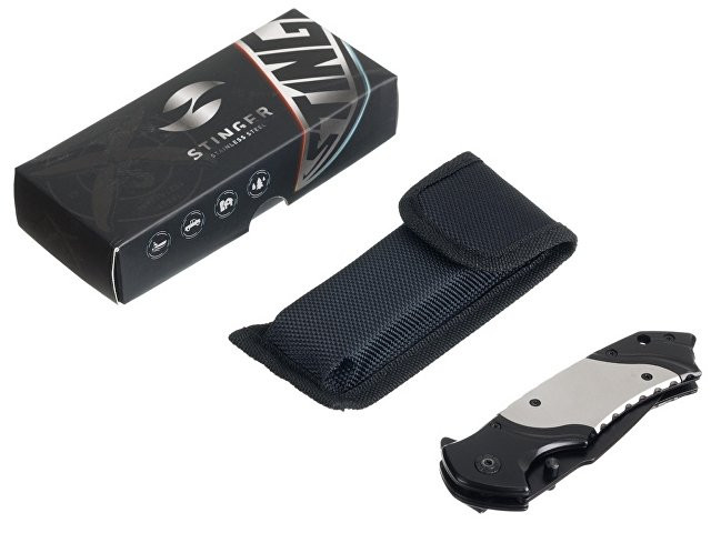 НОЖ СКЛАДНОЙ STINGER Повседневный нож из прочных материалов. Легкий и неприхотливый в обслуживании. Рукоять ножа произведена из нержавеющей стали, собрана на втулках - “бонках”, поэтому при необходимости нож можно легко промыть. Нож быстро открывается при помощи флиппера с ассистом (механизм ускоренного открывания). На рукояти расположено отверстие для темляка и клипса для удобного размещения ножа в кармане. Клинок ножа произведен из жаропрочной мартенситной стали 3Cr13. Преимуществом этой стали является отличное противодействие коррозии благодаря высокому содержанию хрома (13%). Оптимальное содержание легирующих элементов в составе сплава 3Cr13 придает ему хорошую твердость в диапазоне 52-55 HRC. Из-за низкого содержания углерода (0,3%) заточку лезвие из такой сталь держит средне, но легко затачивается даже после активной эксплуатации ножа. При этом дополнительных аксессуаров для заточки не требуется, достаточно простого точильного камня или мусата. Характеристики: Материал клинка: нержавеющая сталь 3CR13 Твердость по шкале Роквелла: 52-55 HRC Материал рукояти: нержавеющая сталь Метод открывания клинка: флиппер с ассистом (механизм ускоренного открывания) Фиксатор клинка: Liner Lock Длина ножа: 200 мм Длина клинка: 80 мм Толщина клинка: 3 мм Вес: 210 г. Цвет рукояти: серебристый/черный Особенности: рукоять с клипом и отверстием под темляк В комплекте: нейлоновый чехол