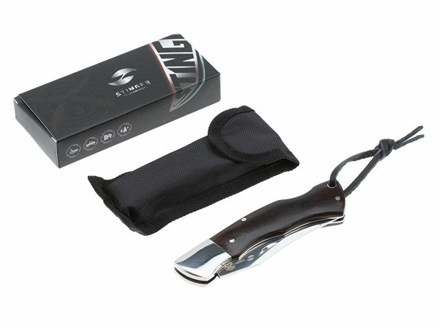 НОЖ СКЛАДНОЙ STINGER Материал лезвия: нержавеющая сталь марки 8Cr13 Материал рукояти: сталь + дерево Фиксатор лезвия: Back Lock Длина ножа: 220 мм Длина клинка: 92 мм Толщина клинка: 3 мм Вес: 161 г Цвет рукояти: серебристо-коричневый Особенности: с темляком Метод открывания клинка: за выемку на лезвии В комплекте: нейлоновый чехол, кожаный шнурок