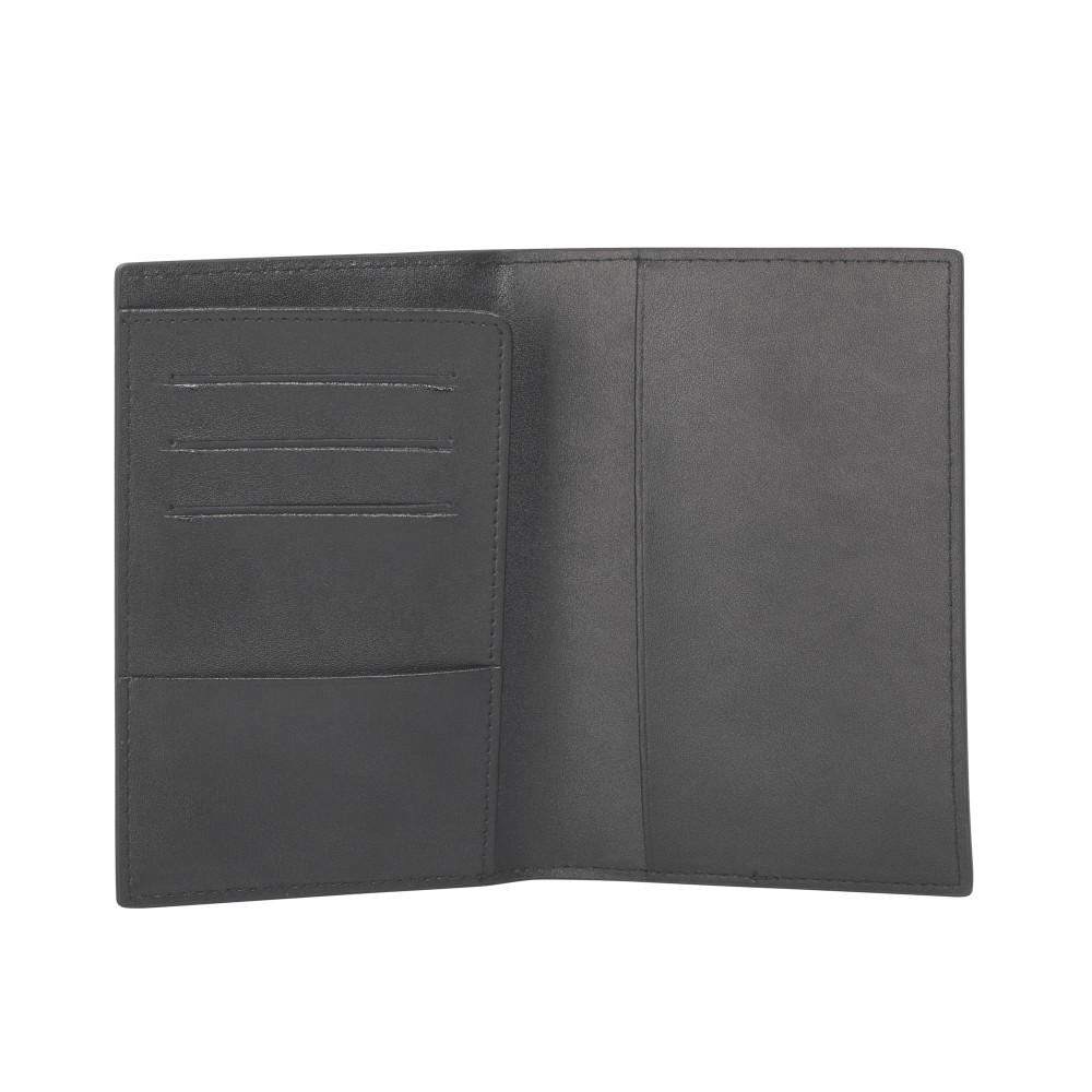 Обложка для паспорта изготовлена из натуральной кожи черного цвета.