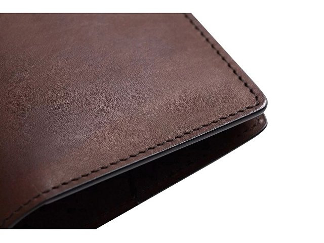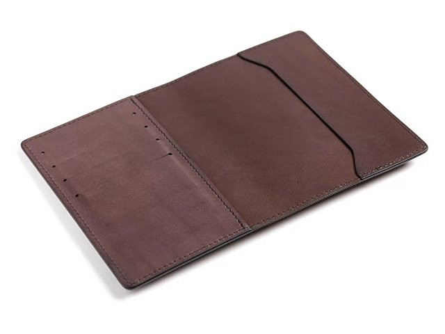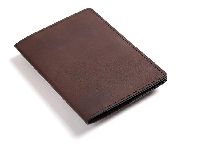 Классическая обложка из дублированной кожи, прокрашенные края, аккуратный шов, прорези для четырёх карт, место для паспорта и документов на машину.